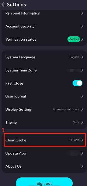 From the bottom right-hand corner of the App, click on "Profile"> "Settings">"Clear Cache".